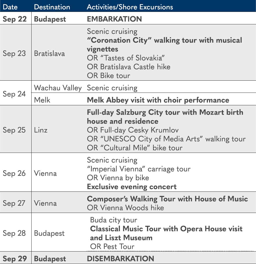 Capture the imperial history of Old-World Europe along the Danube River as it flourished beneath towering fortresses and inspired legendary artists and musicians. Throughout your journey you will visit the river’s legendary capitals: Budapest, Bratislava and Vienna – the city of waltzes. Encounter fascinating architecture and historical museums, including Budapest’s Liszt Museum and magnificent Opera House. Plus, follow The Sound of Music through sprawling Salzburg, the incomparable birthplace of Wolfgang Amadeus Mozart.